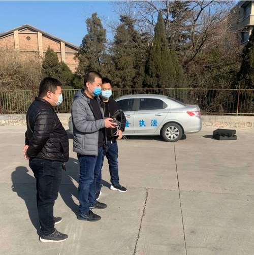 执法大队长杜鹏带队无人机组对散煤复燃情况进行飞检。