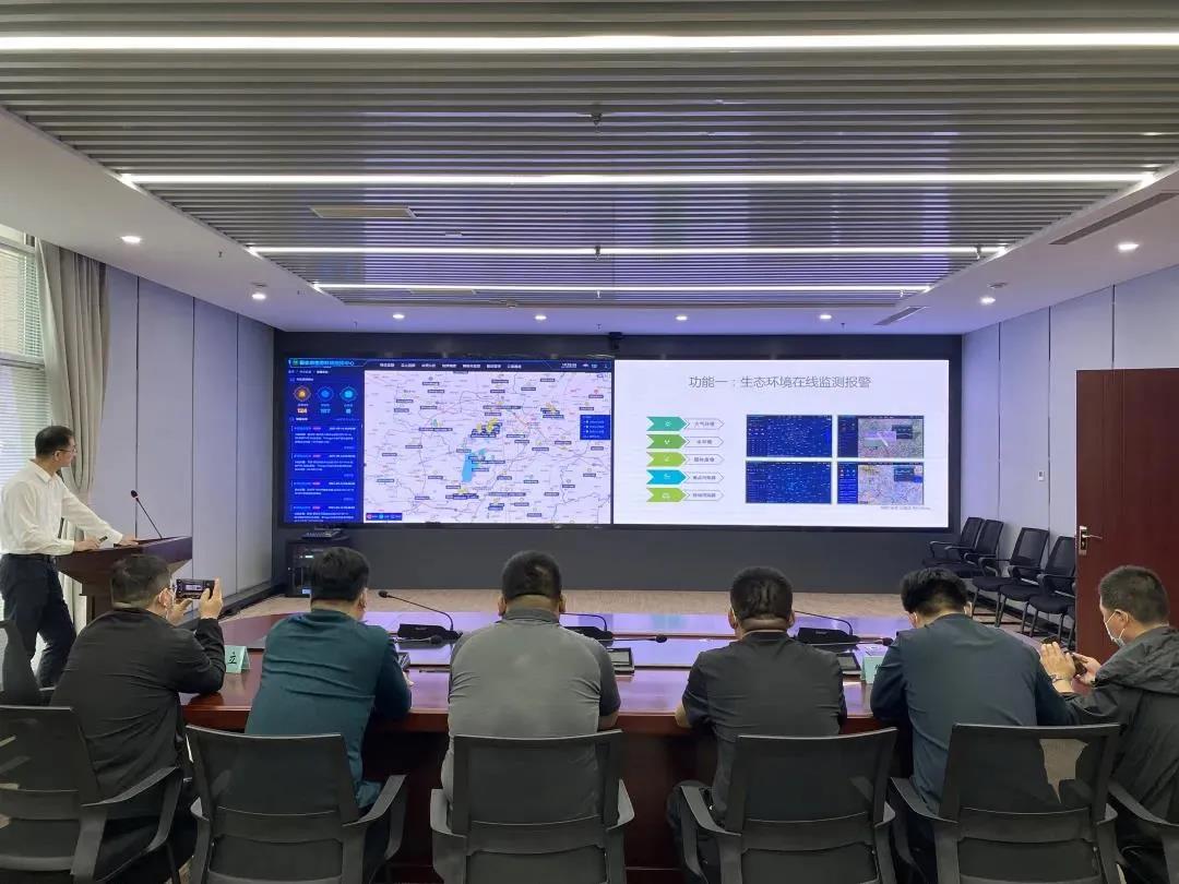 王昌谦一行观看了生态环境指挥中心宣传片,通过专人讲解和平台现场演示,详细了解了指挥中心的建设理念、软硬件配套、系统平台功能以及相关业务应用等情况。在随后召开的座谈交流会上,双方围绕指挥中心架构体系、运行体系、平台整合、交办流程、网格监管等建设情况进行了深入交流探讨。