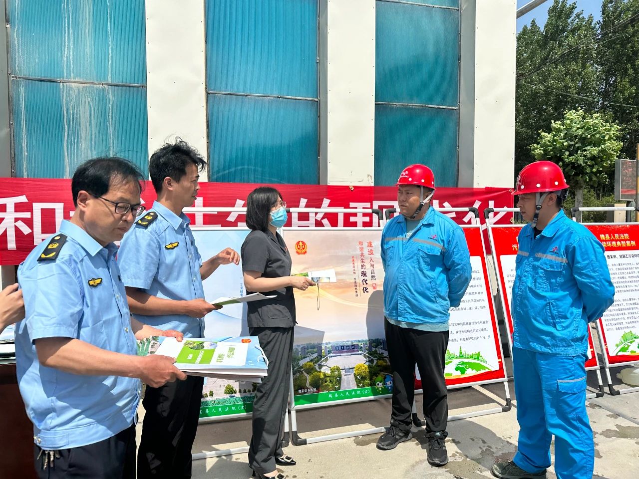 邯郸市生态环境局魏县分局联合公安局、检察院、法院、住建局、气象局、卫健局等县直单位在文侯公园东门开展了以“建设人与自然和谐共生的现代化”为主题的宣传活动。