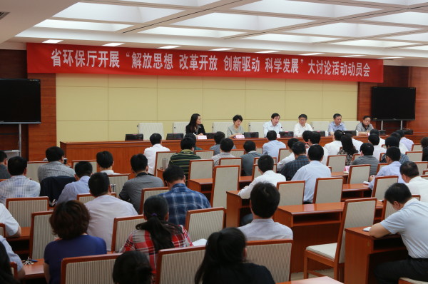 5月14日,省环保厅召开“解放思想、改革开放、创新驱动、科学发展”大讨论活动动员大会。省环保厅党组书记、厅长陈国鹰作动员讲话,省环保厅党组副书记、副厅长杨智明主持动员大会。厅领导、厅机关全体人员、厅属各单位中层以上干部参加了动员大会。