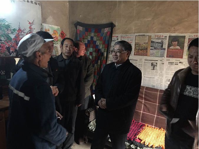 2017年1月18日,厅党组副书记、副厅长杨智明同志带领人事与离退休干部处有关负责同志到我厅精准脱贫帮扶点邢台市内丘县集上赛村、大和庄村进行调研走访和慰问。杨智明一行冒着寒风走村入户看望了贫困户、老党员、五保户代表,每到一户都详细询问他们的生产生活情况,深入了解年货准备情况,并征求对驻村工作组和环保工作的意见和建议,勉励他们积极发展生产,努力改善生活,同时代表厅党组向他们致以节日的慰问和新春的祝福,为他们送去了米、面、油等慰问品。之后,杨智明一行又实地查看了集上赛瑞祥农业开发有限公司羊养殖项目、大和庄村民文化活动中心及活动广场等脱贫帮扶项目。
