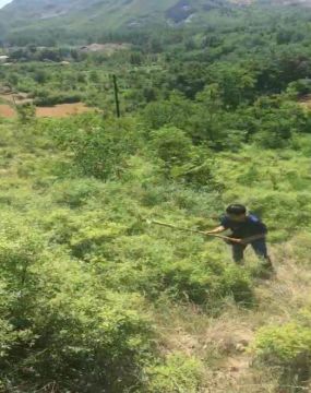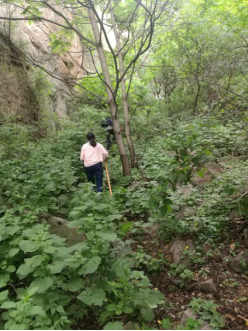 5月30日上午,采样组到达易县采样点位,发现该点位备注为耕地,实际为石质山地,基本无法采样,后经仔细查看,在不移动该点位的情况下,刨除表面植物后发现一处比较符合采样要求的地点,中午12时在炎炎烈日下艰难挖掘后最终形成斜剖面,采集样品时将大小石块基本去除,顺利完成土壤样品的采集。