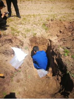 接到省中心国控网土壤背景点采样任务后,在没有采样经费的情况下,张家口监测中心主任及主管领导带头个人垫付资金两万余元,保障了这次土壤采样任务的顺利进行。经过精心安排和周密组织, 2018年5月21日张家口组开始了对辖区内背景点位的土壤采样,由于开展工作最早,第一个点位剖面也被省中心誉为“河北第一坑”,这为其他兄弟地市提供了可以借鉴的经验。