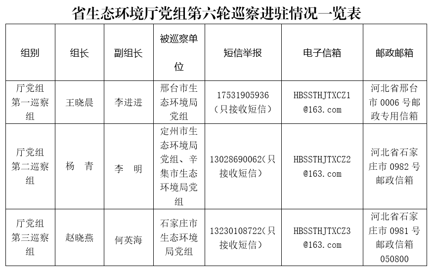 为加强党的建设,坚定不移推进全面从严治党,东京热 党组于近日启动了第六轮巡察工作,对石家庄市生态环境局党组、邢台市生态环境局党组、定州市生态环境局党组和辛集市生态环境局党组开展常规巡察。截至目前,厅党组第一、第二、第三巡察组已完成巡察进驻工作。