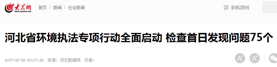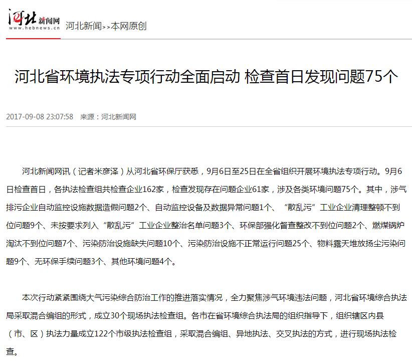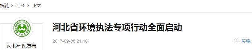 “河北省环境执法专项行动全面启动”媒体报道 来源:省生态环境宣传教育中心 时间:2017-09-25