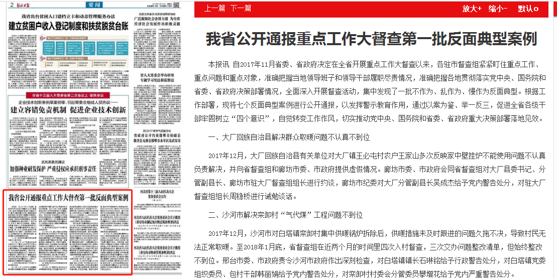河北日报:我省公开通报重点工作大督查第一批反面典型案例
