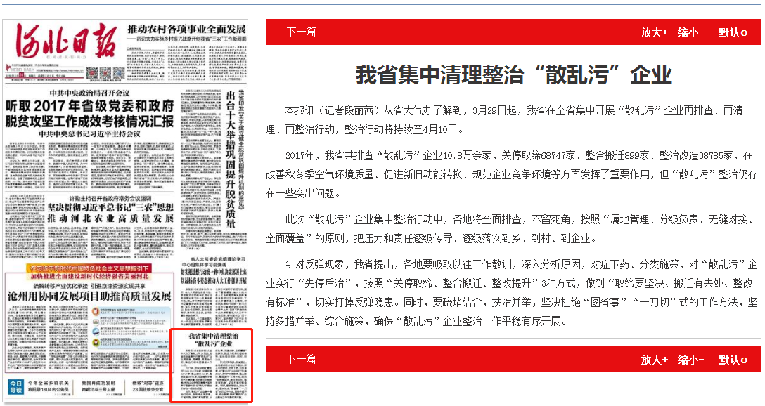 本报讯(记者段丽茜)从省大气办了解到,3月29日起,我省在全省集中开展“散乱污”企业再排查、再清理、再整治行动,整治行动将持续至4月10日。