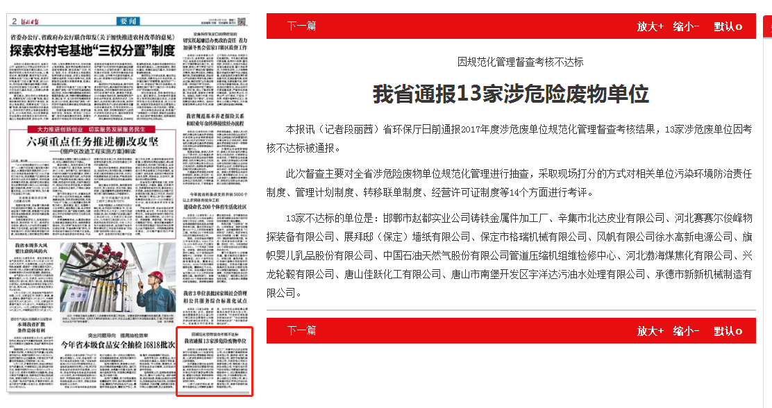 河北日报:我省通报13家涉危险废物单位