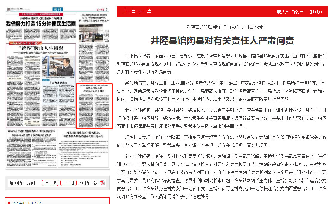 河北日报:井陉县馆陶县对有关责任人严肃问责