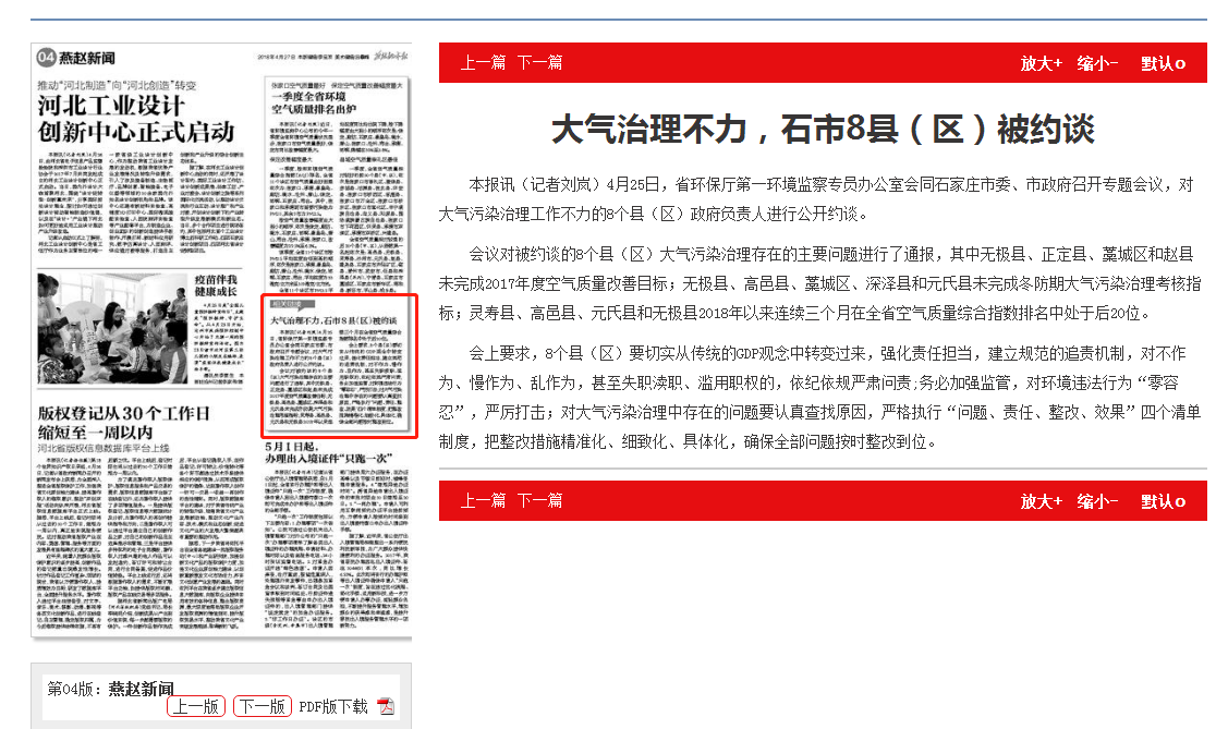 燕赵都市报:大气治理不力,石市8县(区)被约谈