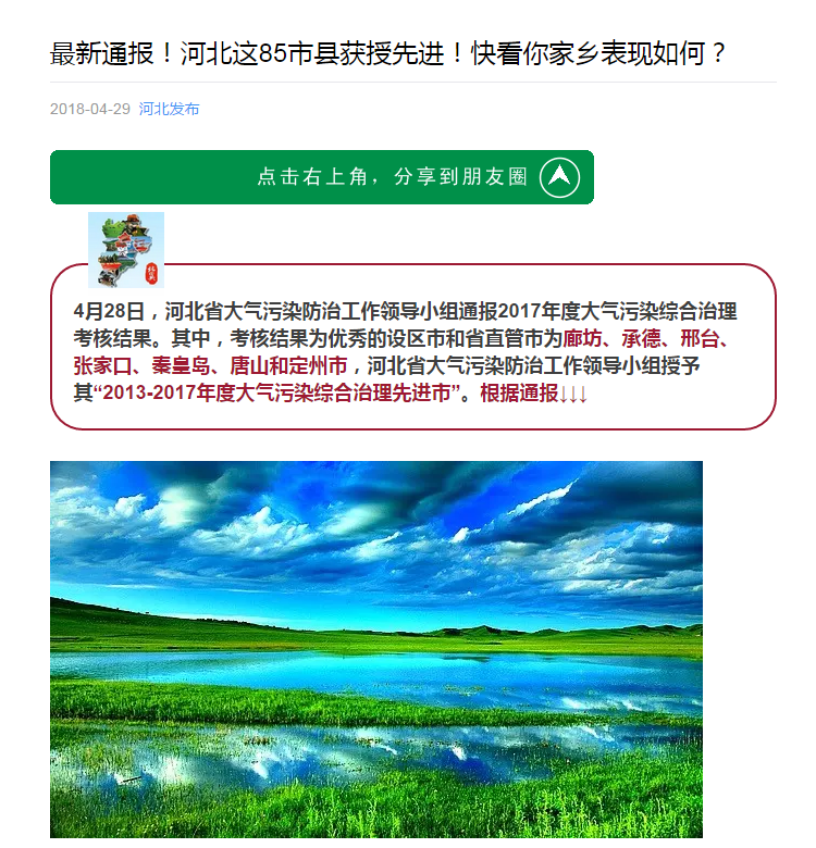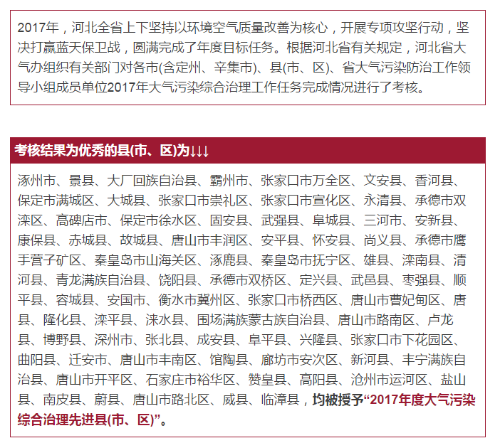 长城网:河北省2017年度大气污染综合治理考核结果公布