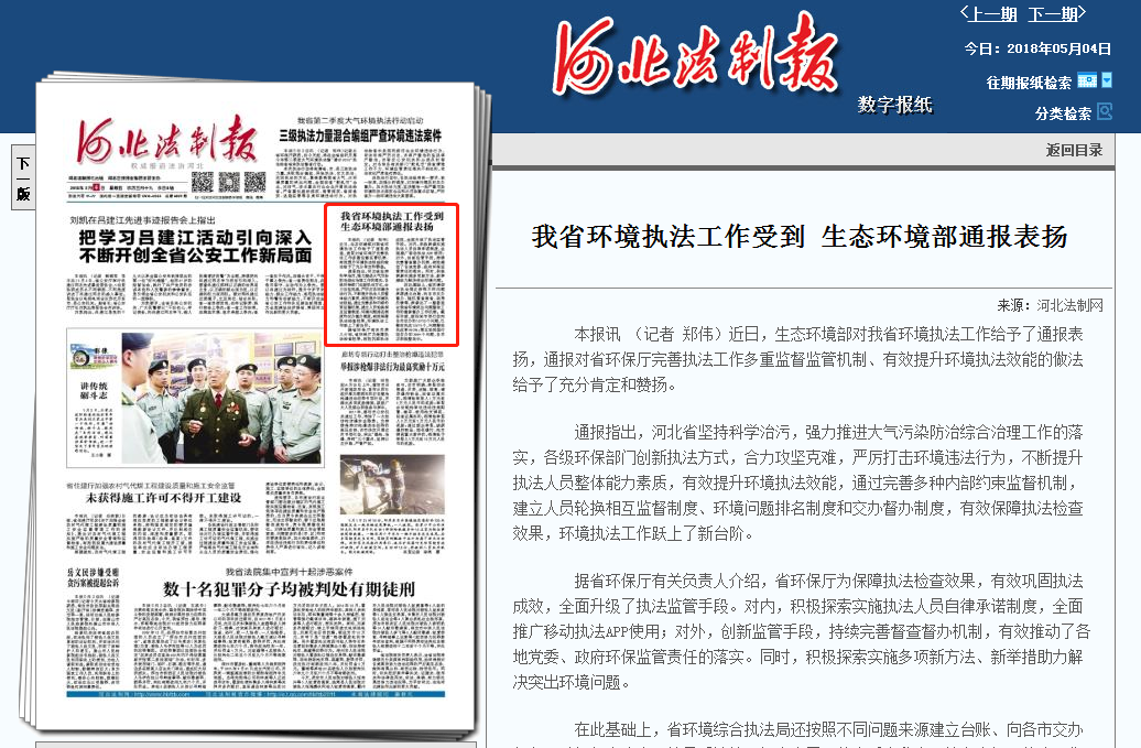 河北法制网:我省环境执法工作受到 生态环境部通报表扬