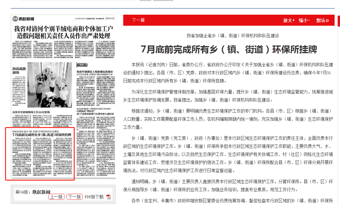 燕赵都市报:7月底前完成所有乡(镇、街道)环保所挂牌