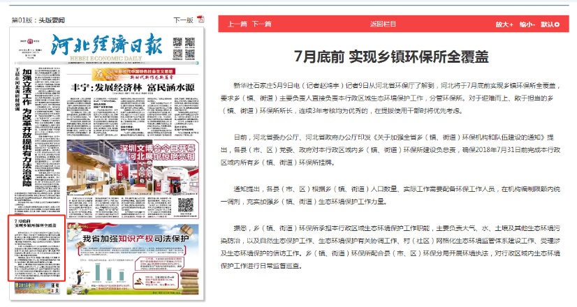 河北经济日报:7月底前 实现乡镇环保所全覆盖