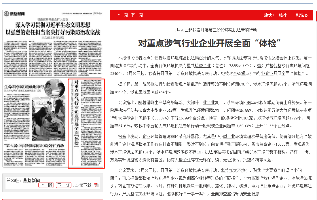 燕赵都市报:5月20日起我省开展第二阶段环境执法专项行动