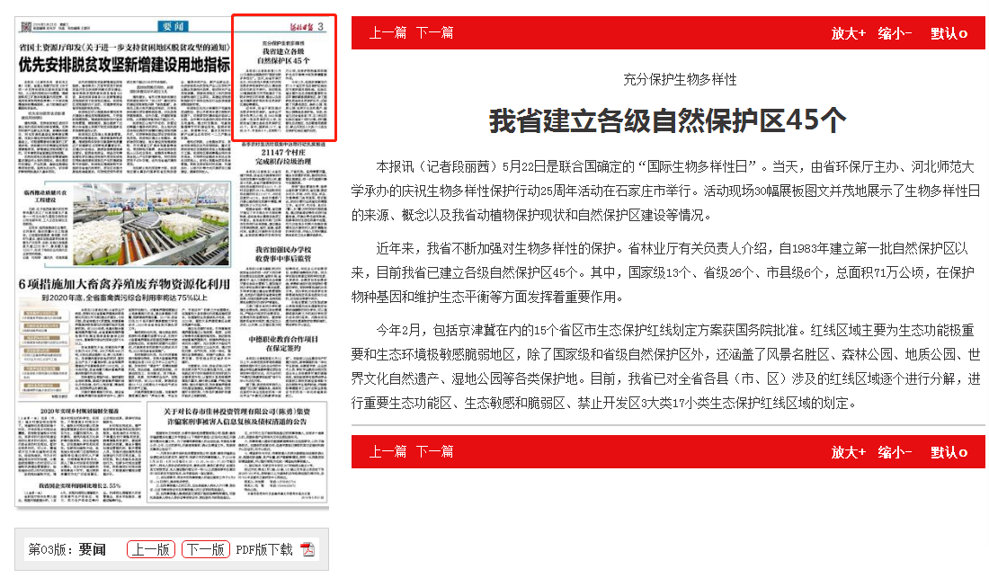 河北日报:充分保护生物多样性 我省建立各级自然保护区45个