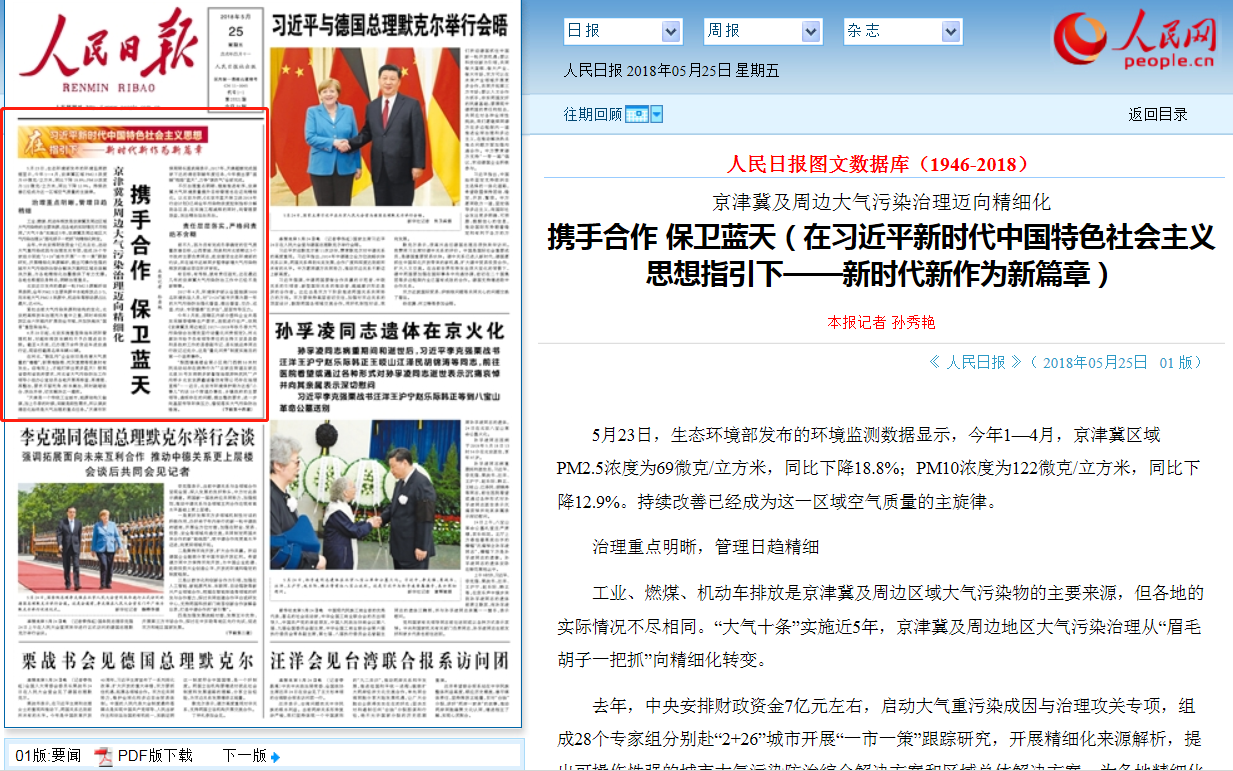 人民日报:京津冀及周边大气污染治理迈向精细化 携手合作 保卫蓝天