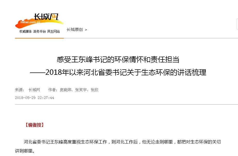 ——2018年5月29日,河北省委书记王东峰在全省生态环境保护大会上的讲话