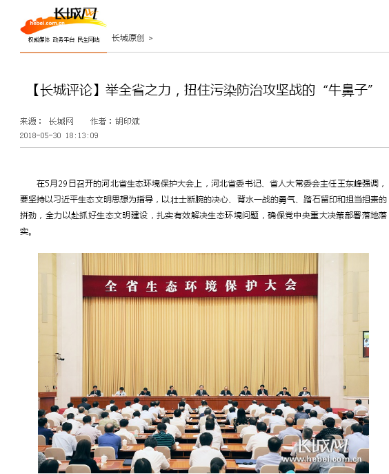 长城网:举全省之力,扭住污染防治攻坚战的“牛鼻子