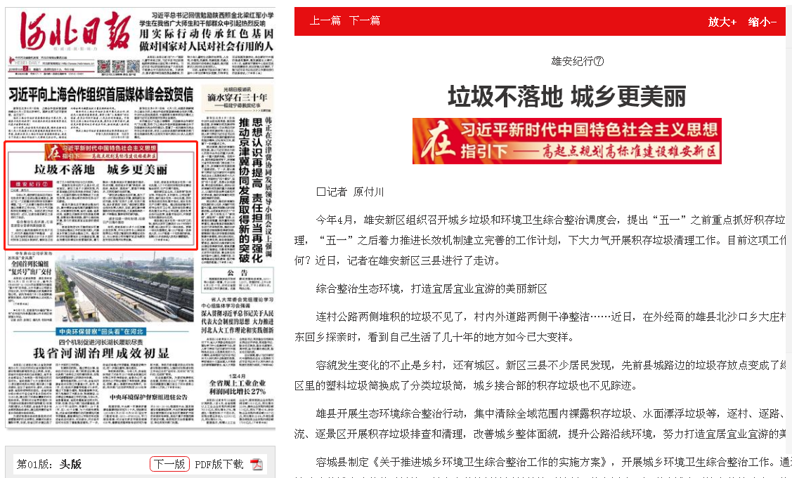 “新区综合整治生态环境,是为了进一步打造优美城乡环境、展现新区良好风貌,实现‘垃圾不上街,垃圾不落地,城乡更美丽’目标。”雄安新区管委会相关负责人表示,目前,新区集中清理积存垃圾成效明显,三县展现焕然一新、干净整洁、繁荣有序的新风貌。