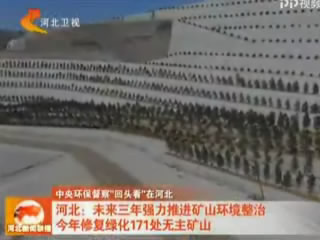 河北卫视-京津冀大头条:中央环保督察“回头看”在河北——河北:未来三年强力推进矿山环境整治 今年修复绿化171处无主矿山。