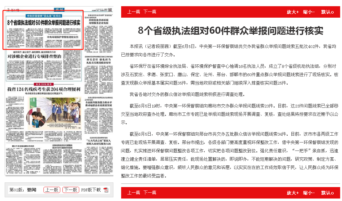 河北日报:8个省级执法组对60件群众举报问题进行核实