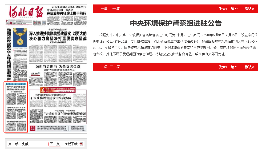 河北日报头版:#中央环保督察“回头看”在河北# 全省中央环境保护督察“回头看”协调联络工作视频会议召开