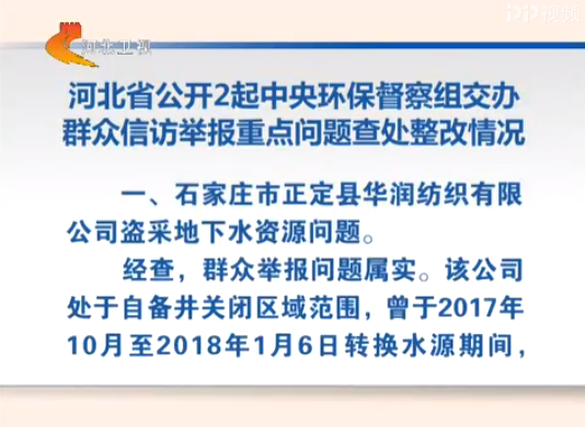河北卫视-河北新闻联播:河北省公开2起中央环保督察组交办群众信访举报重点问题查处整改情况