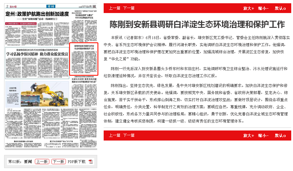 河北日报:陈刚到安新县调研白洋淀生态环境治理和保护工作