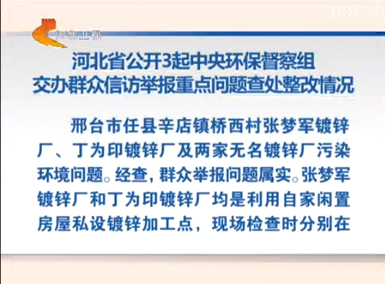河北卫视-河北新闻联播:我省公开曝光3起中央环保督察组交办群众信访举报事项查办不实典型问题