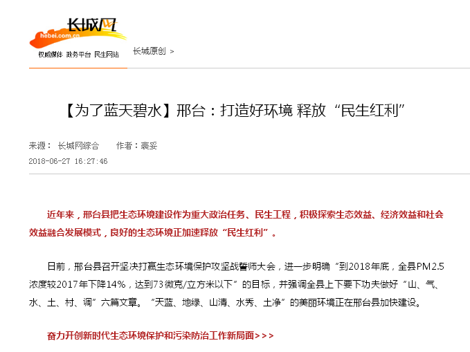 长城网综合:【为了蓝天碧水】邢台:打造好环境 释放“民生红利”