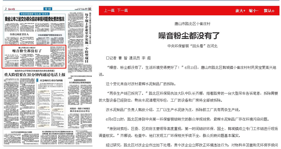 河北日报:唐山市路北区小崔庄村 噪音粉尘都没有了