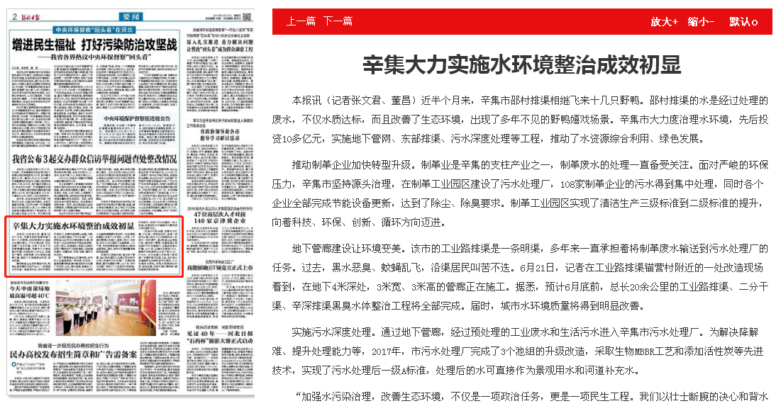 河北日报:辛集大力实施水环境整治成效初显