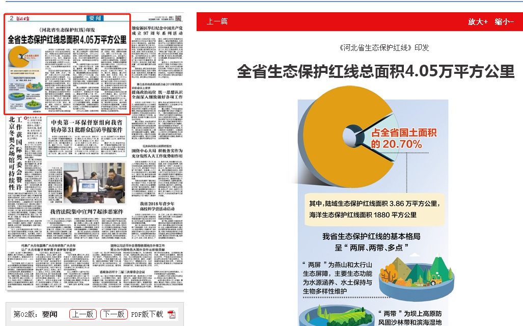 河北日报:《河北省生态保护红线》印发 全省生态保护红线总面积4.05万平方公里