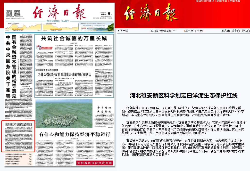 经济日报:河北雄安新区科学划定白洋淀生态保护红线