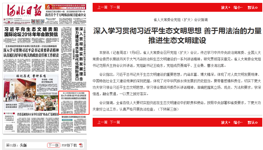 河北日报:深入学习贯彻习近平生态文明思想 善于用法治的力量推进生态文明建设