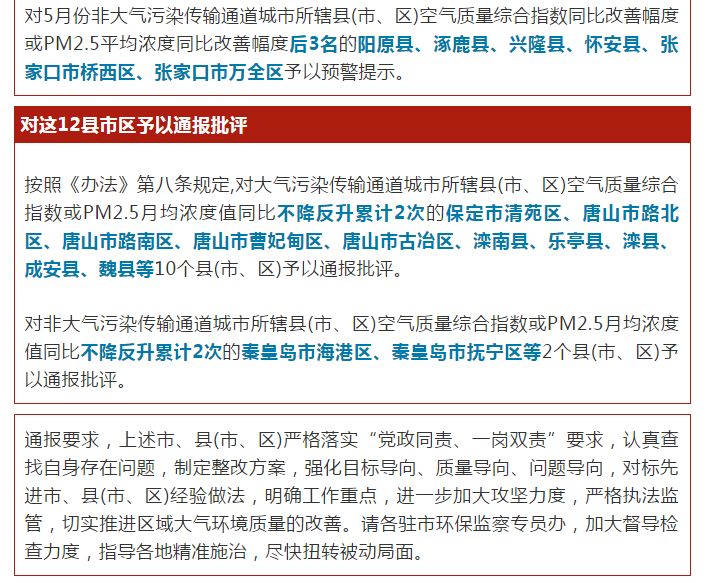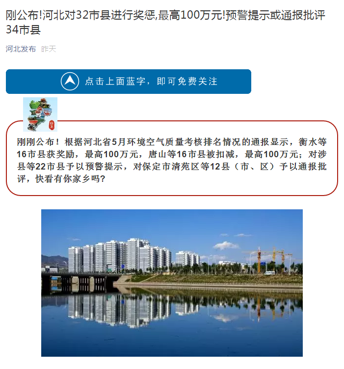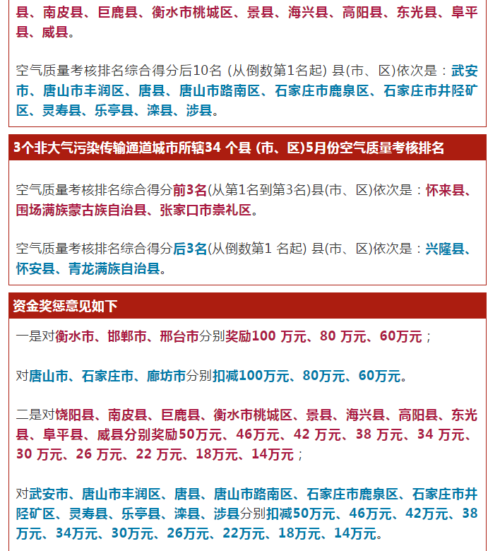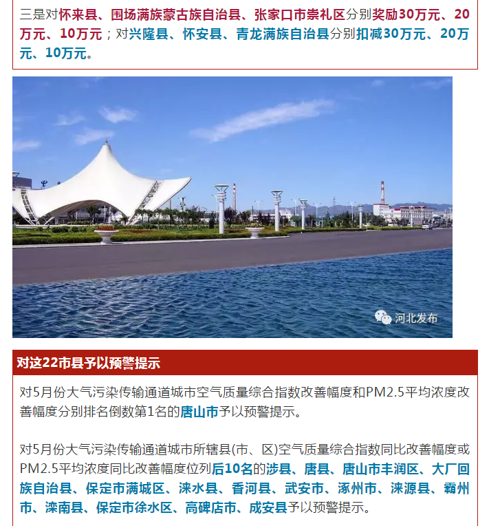 长城网:河北5月空气质量考核:衡水奖励100万元 唐山扣减100万元