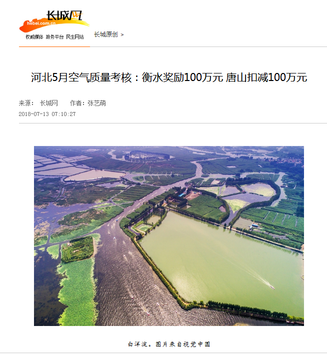长城网:河北5月空气质量考核:衡水奖励100万元 唐山扣减100万元