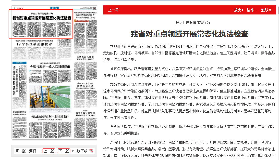 河北日报:严厉打击环境违法行为 我省对重点领域开展常态化执法检查
