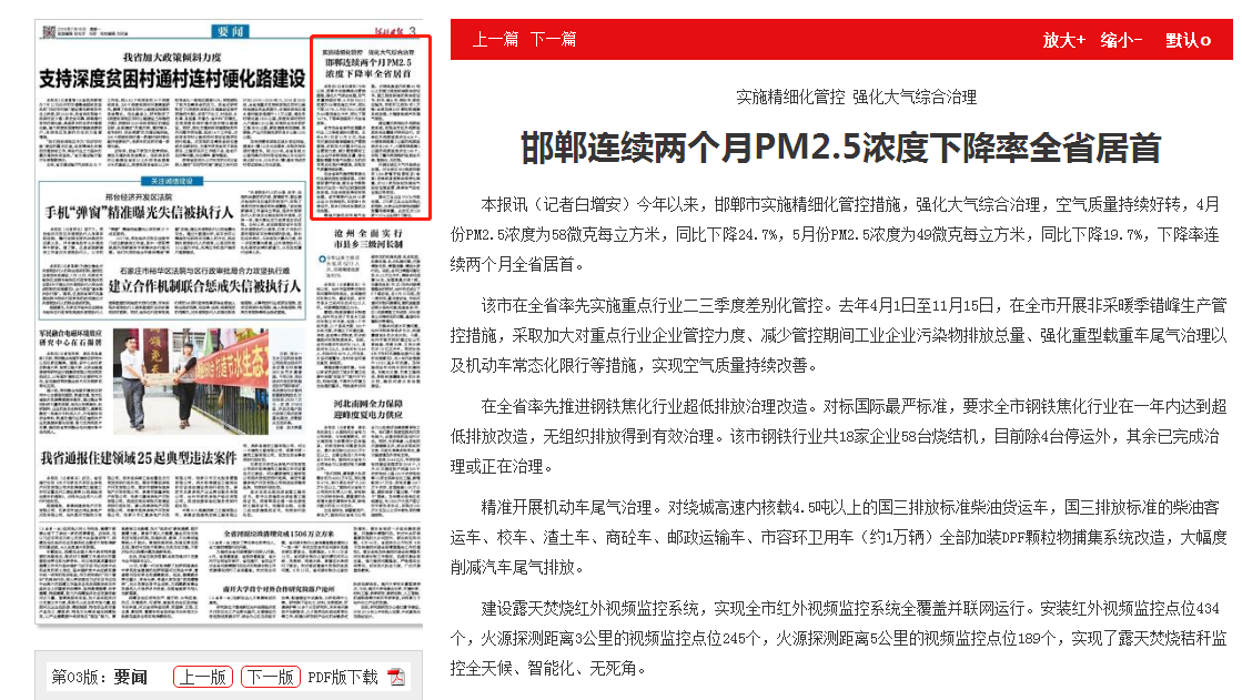 河北日报:邯郸连续两个月PM2.5浓度下降率全省居首