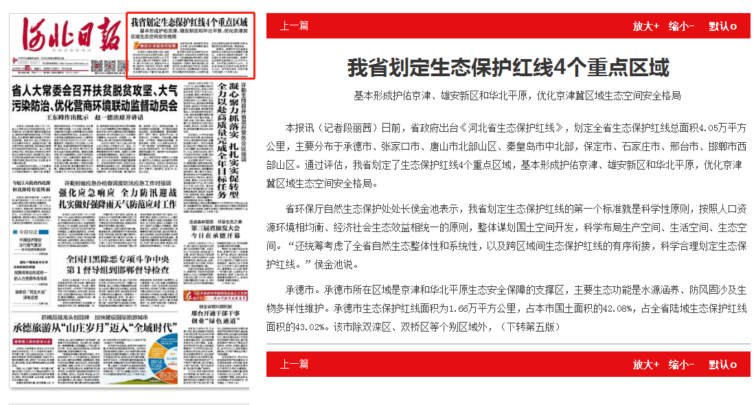 河北日报:我省划定生态保护红线4个重点区域