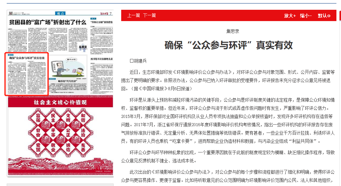 期待《环境影响评价公众参与办法》不折不扣地落地落实,用“公众参与环评”的真实有效,确保环评结果真实有效。
