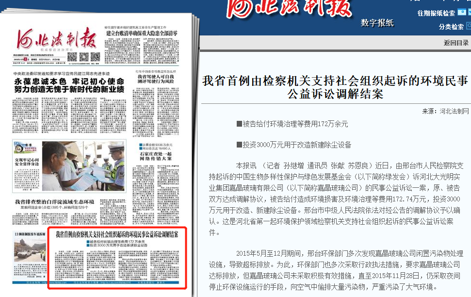河北法制报:我省首例由检察机关支持社会组织起诉的环境民事公益诉讼调解结案