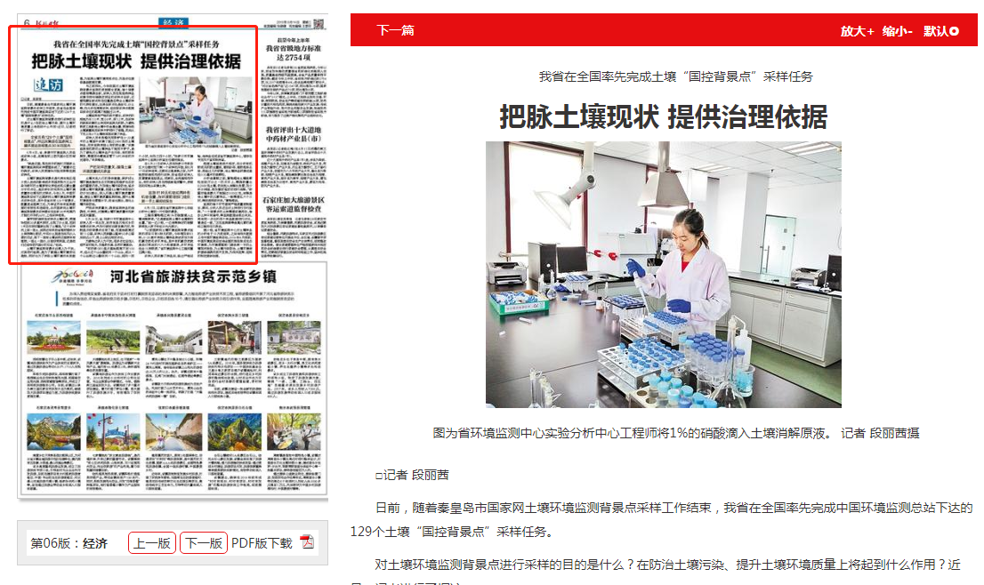 河北日报: 我省在全国率先完成土壤“国控背景点”采样任务 把脉土壤现状 提供治理依据