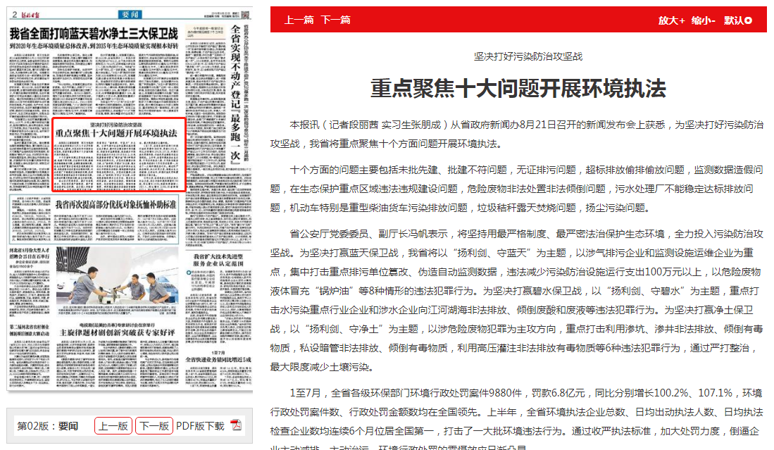 河北日报;坚决打好污染防治攻坚战 重点聚焦十大问题开展环境执法