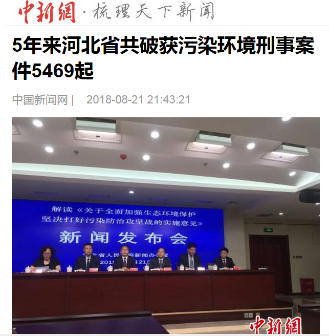 中新网: 5年来河北省共破获污染环境刑事案件5469起