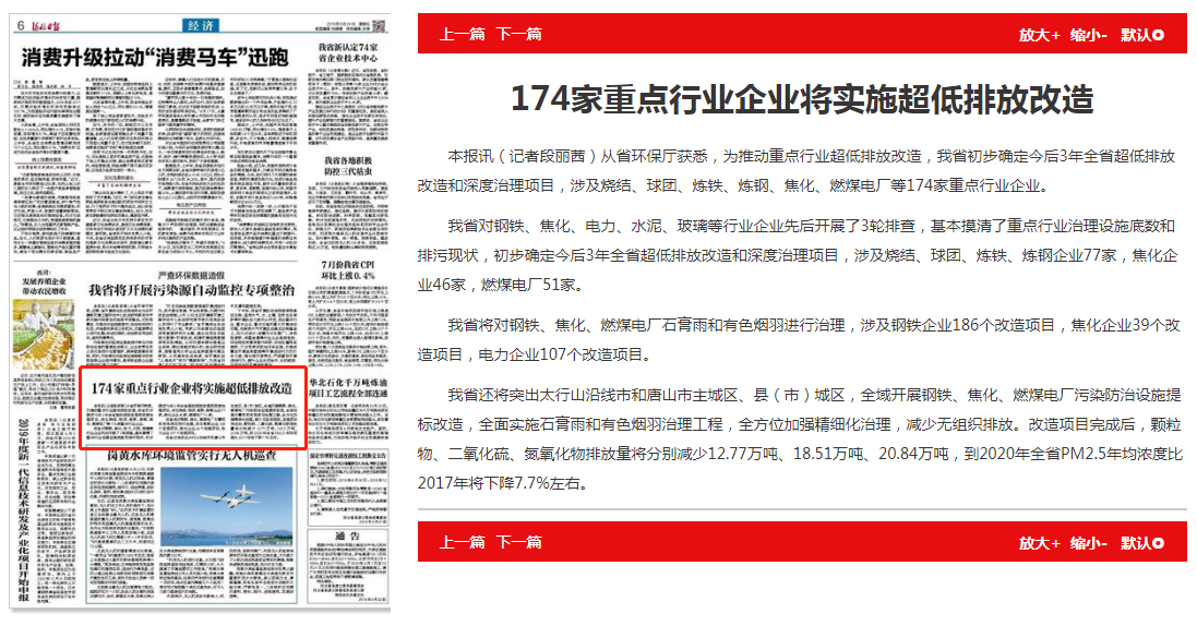 本报讯(记者段丽茜)从省环保厅获悉,为推动重点行业超低排放改造,我省初步确定今后3年全省超低排放改造和深度治理项目,涉及烧结、球团、炼铁、炼钢、焦化、燃煤电厂等174家重点行业企业。