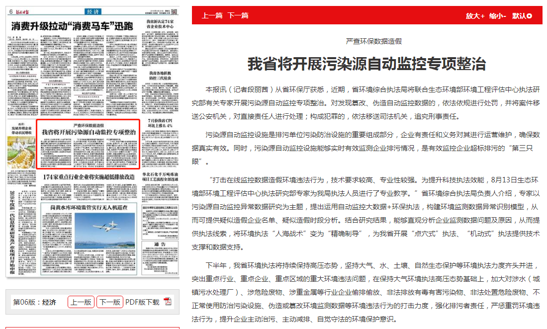河北日报: 严查环保数据造假 我省将开展污染源自动监控专项整治