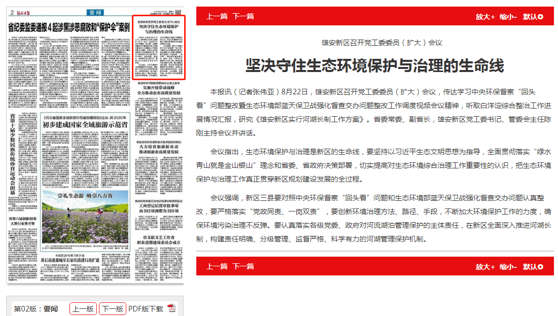 会议强调,新区三县要对照中央环保督察“回头看”问题和生态环境部蓝天保卫战强化督查交办问题认真整改,要严格落实“党政同责、一岗双责”,要创新环境治理方法、路径、手段,不断加大环境保护工作的力度,确保环境污染治理不反弹。要认真落实各级党委、政府对河流湖泊管理保护的主体责任,在新区全面深入推进河湖长制,构建责任明确、分级管理、监督严格、科学有力的河湖管理保护机制。