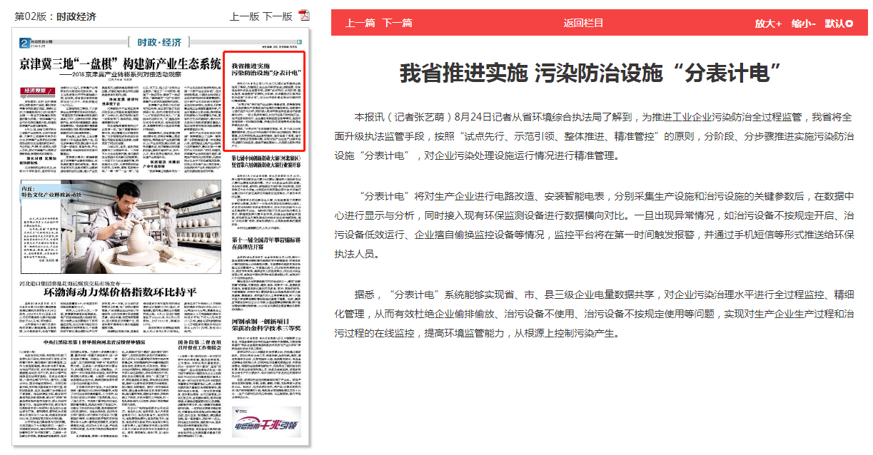 河北经济日报;我省推进实施 污染防治设施“分表计电”